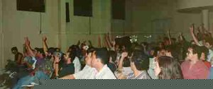 Here is the audience waving their arms in the air, cheering, and